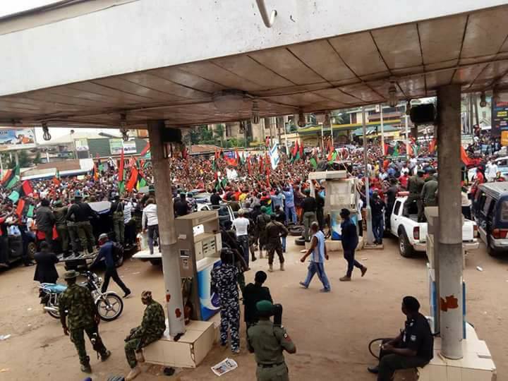 Biafra : Soldiers And Police Watch As Nnamdi Kanu Shut Down Ekwulobia (Photos)