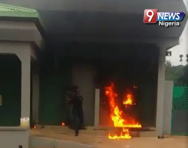 Angry customer sets bank on fire (Video)