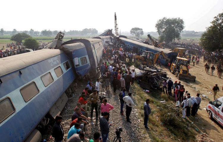 Rescue officials with yellow helmets were working their way through the crowds, carrying victims from the mangled wreckage as teams struggled to remove the derailed wagons from the tracks, one of the main transportation routes for goods and passengers in northern India.