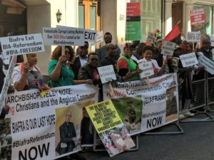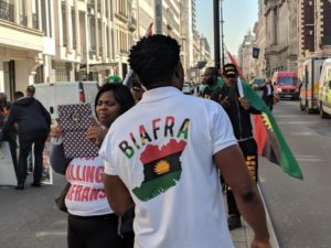 Some Biafran sympathizers are currently protesting at the Pall Mall Street, Westminster, a few metres from Buckingham Palace as President Muhammadu Buhari meet Queen Elizabeth II and other heads of state.
