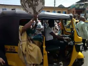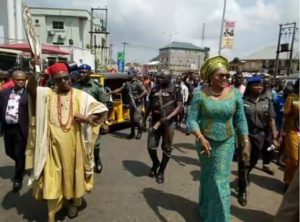 The governor who had just received his certificate of return from INEC, was joined by his wife, Chief Mrs Ebelechukwu Obiano in Tricycle (Keke) as he marched round the town, acknowledging cheers from the people. At Eke Awka Market, traders chanted tirelessly in praise of the historic victory of the governor.