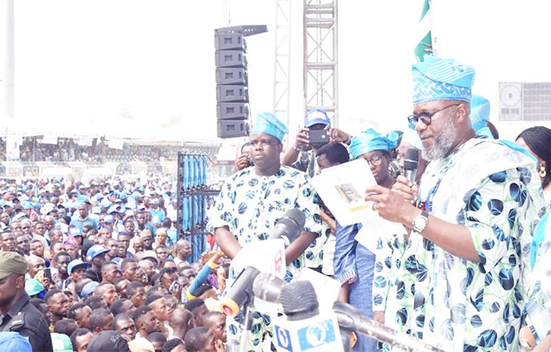 The event was witnessed by a huge crowd at the Moshood Abiola Stadium even as many groups and associations including the Progressive Obas of Ogun Central Senatorial District, the National Association of Nigerian Student (NANS), National Union of Roads Transport Workers (NURTW),the Association of Commercial Motor Cycle Riders of Nigeria (ACCOMORON), representatives of 60 political parties, Hausa, Igbo and non-indigene associations took turn to deliver goodwill messages and announced their adoption of Akinlade as their gubernatorial candidate for the 2019 election.