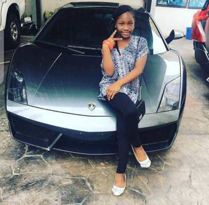 The excited daughter took to social media to share a photo of herself posing in front of the ash coloured Lamborghini.