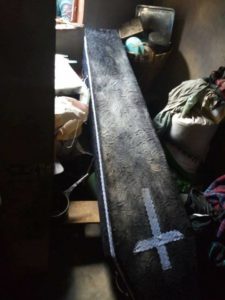 It was gathered that the coffin reportedly refused to enter the church building upon being removed from the canter and instead led its bearers to a house and plunged it through the window breaking glass panes and lodged inside the house.