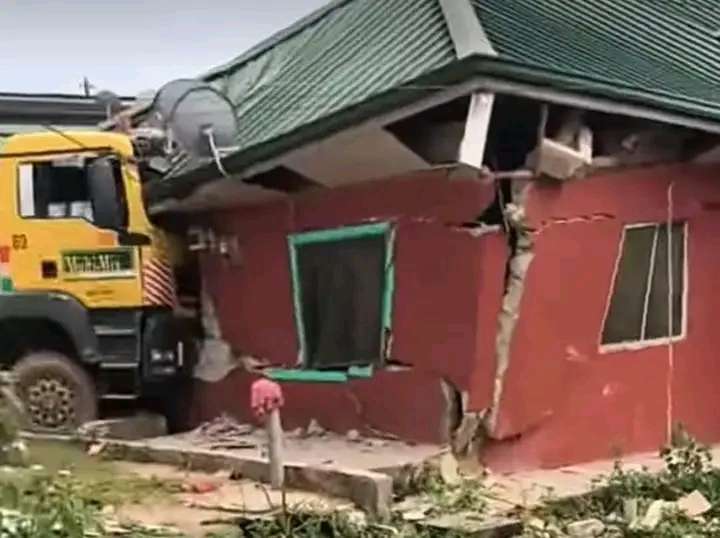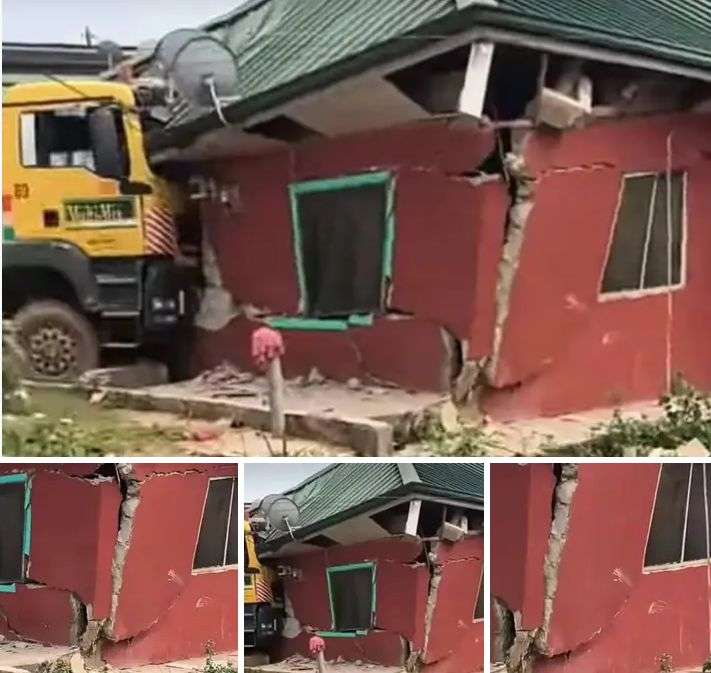 A Nigerian man has expressed deep gratitude to God after a tragic accident was narrowly avoided when a large lorry rammed into his house while his family was asleep.