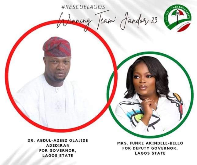 Funke Akindele, Nollywood actress popularly known as ‘Jenifa’, has been chosen as the running mate to the Peoples Democratic Party (PDP) governorship candidate in Lagos.