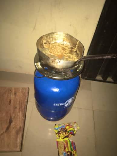 Hunger In Nigeria; Student Cries Out After Her Noodles Was Stolen From The Gas Burner.