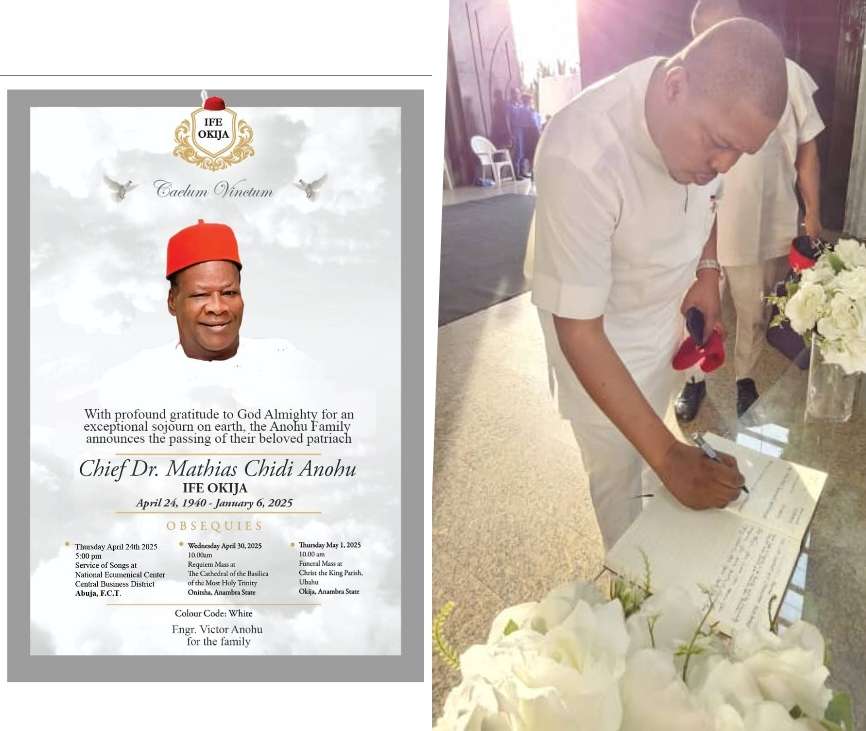 A GREAT ICON GOES HOME: PA DR. MATHIAS CHIDI BOWS OUT AT 85_Chief Jude C. Ezenwafor, the Peoples Democratic Party (PDP) governorship candidate in Anambra State, has paid tribute to the late Chief Dr. Mathias Chidi Anohu, a revered patriarch who passed away on January 6, 2025, at the age of 85.