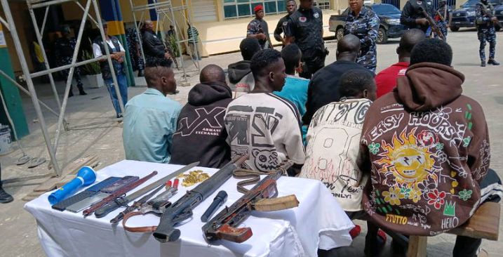 Items recovered from the suspects include: One locally fabricated AK-47 rifle. One locally made pistol. One pump-action gun. 36 live rounds of ammunition. Two live cartridge. Four mobile phones, Two sharp knives. One cutlass. Two flashlights.