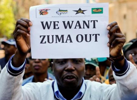 The demonstrators argue that Zuma, whose rule has been tainted by scandal, is responsible for the African National Congress (ANC) losing control of three major urban centres in local elections last month by mismanagement of the economy that is now teetering on the edge of recession.