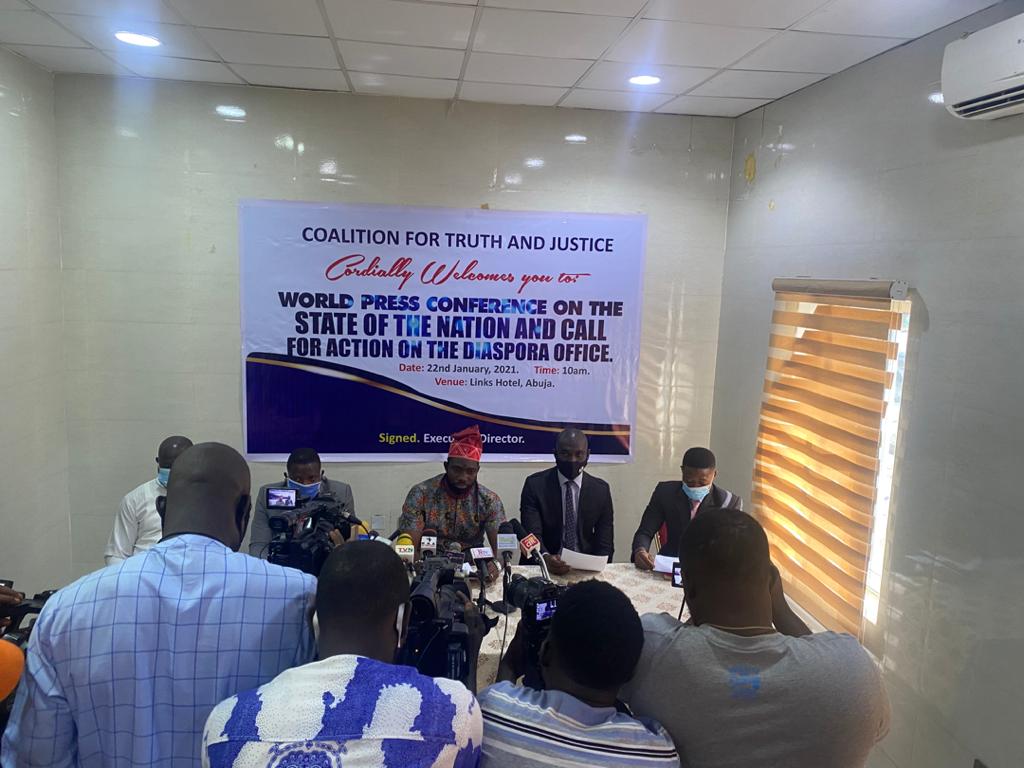 We must all stand up in solidarity to say enough is enough to the adverse impact of the diasporas in our country. To ensure our patriotism is unshaken, the Coalition for Truth and Justice is reminding every Nigerian that this is not a one stakeholder’s affair or fight, We are hereby calling on all Nigerians both in Nigeria and in the diaspora to work together and provide all the needed support for President Muhammadu Buhari led administration for the peace and prosperity of our dear country Nigeria.