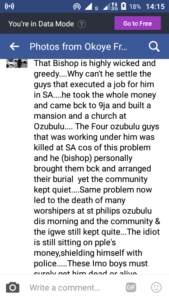 The true story:The church was single handedly built by Bishop for his town. This trouble originated from South Africa, and has taken lives of prominent Ozubulu sons and Daughters in SA. There is a lenghty list of those they say must die. Unfortunately, this had continued since 3 years now.