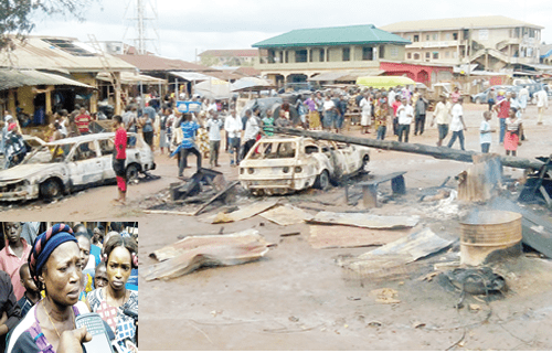 Scores of traders, artisans, residents and property owners wept profusely while bemoaning their fate. In the incident, which occurred about 7:10a.m., at least six vehicles, five houses, several shops, among others were burnt.