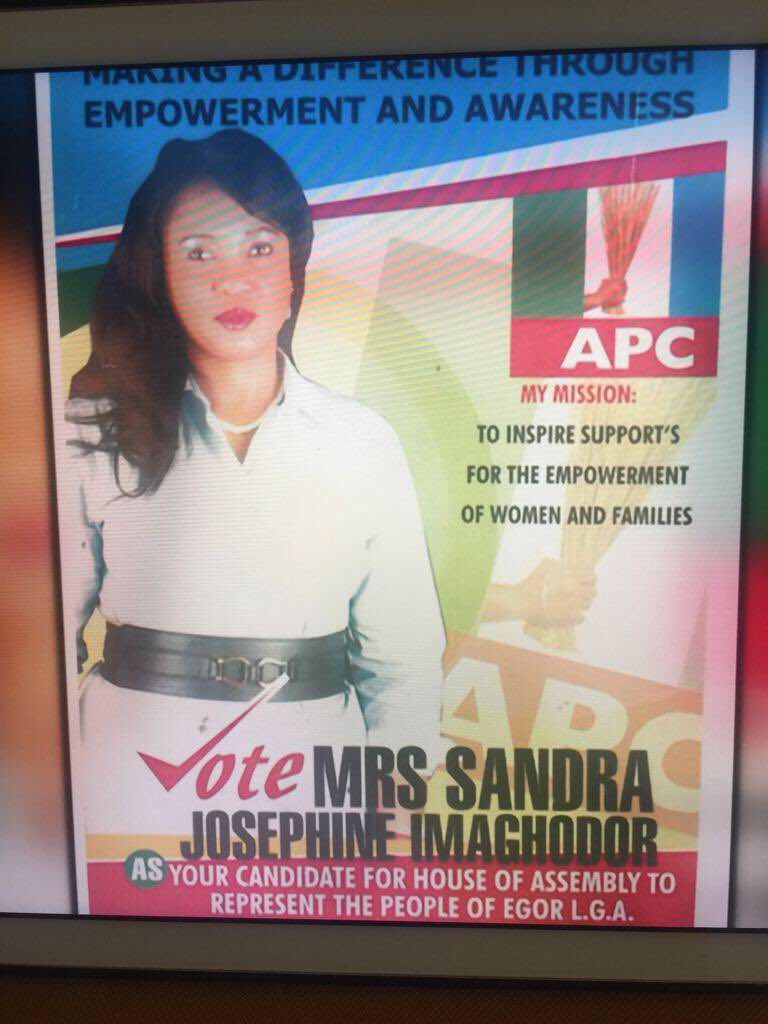 A new Photo going viral on the Internet shows she was Contesting as an Assembly Member in Edo state under the APC platform..