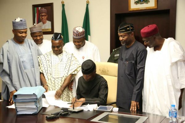 Acting President Yemi Osinbajo on Monday signed the 2017 budget almost four weeks after the National Assembly transmitted the appropriation bill to the presidency.